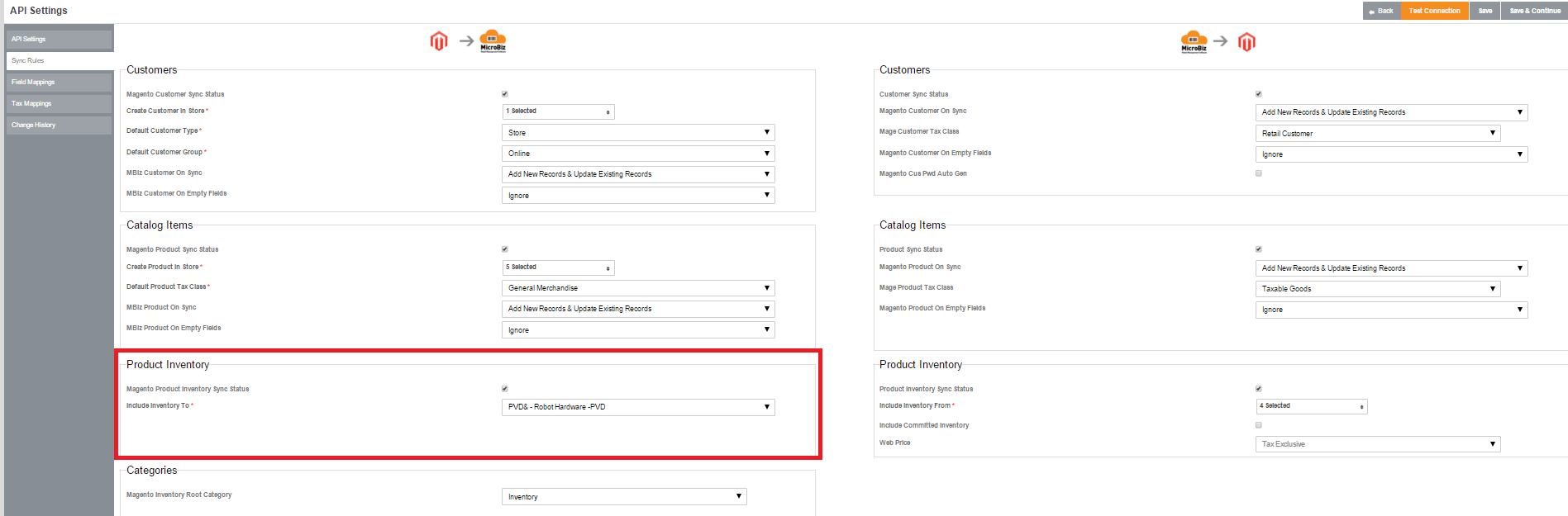 - In API settings turn on Sync Products - there are separate settings for MicroBiz->Magento and Magento -> MicroBiz.
